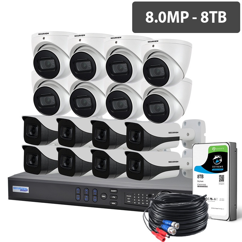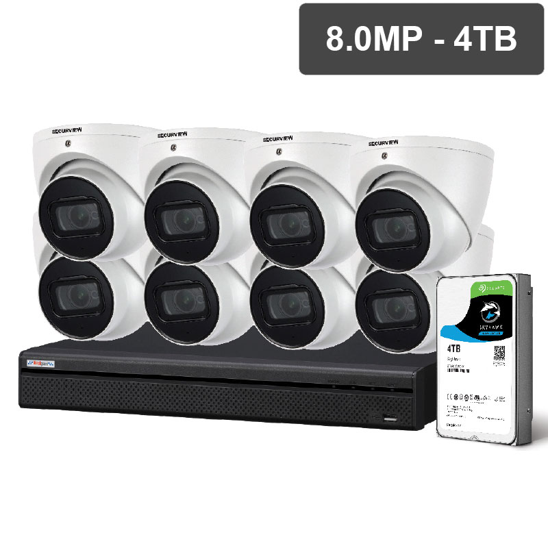 Compact 16 Channel 8.0MP HDCVI Surveillance Kit (8 x Fixed Cameras, 4TB HDD) |